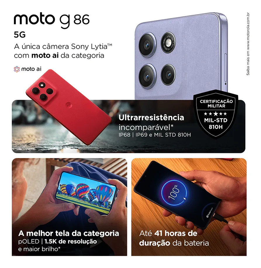 Confira os diferenciais que tornam o Moto G86 5G uma escolha certeira: